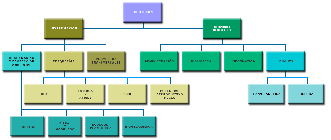 En el organigrama adjunto se indican las dependencias y relaciones entre las distintas unidades.